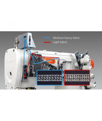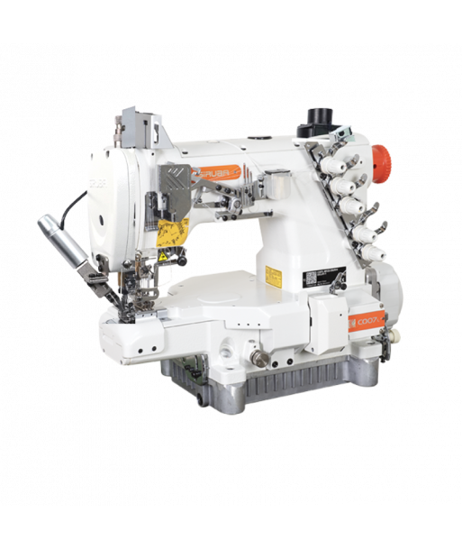 Maquina de Recobrimento de 3 Agulhas com distância total de 5,6mm. Levantamento de Calcador Elétrico. Corte de Linha Elétrico Superior e Inferior. Não necessita de ligação a ar comprimido. Motor Direct Drive. Completa com tampo e bancada.
